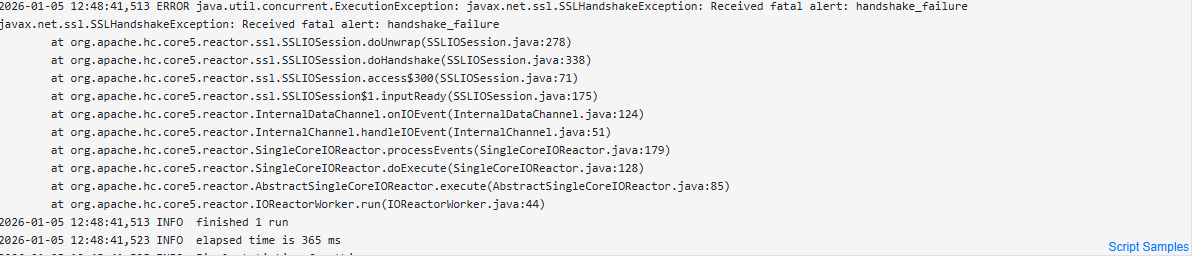 이미지와 같이 SSLHandshake가 발생하면서 오류가 나옵니다.